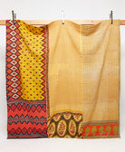 This queen kantha quilt is expertly hand-stitched from start to finish using layers of the highest quality vintage cotton saris. Every stitch reflects our dedication to craftsmanship, ensuring each kantha blanket is not only a functional item but also a work of art. With each quilt being completely one-of-a-kind and unique in pattern, it becomes a statement piece in any room it graces. The signature of the artisan maker on the tag also adds a personal connection, allowing you to appreciate the hands that created it.