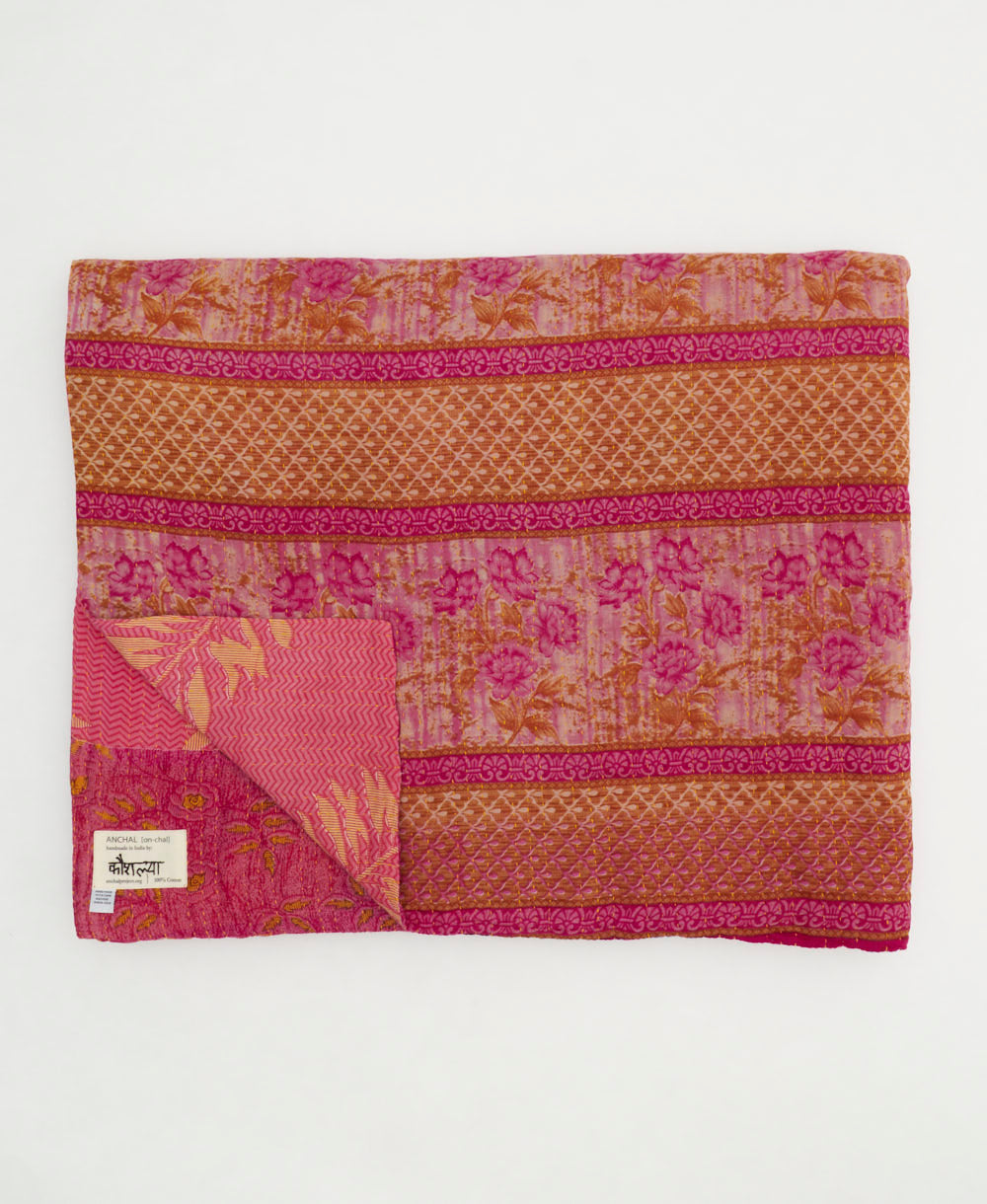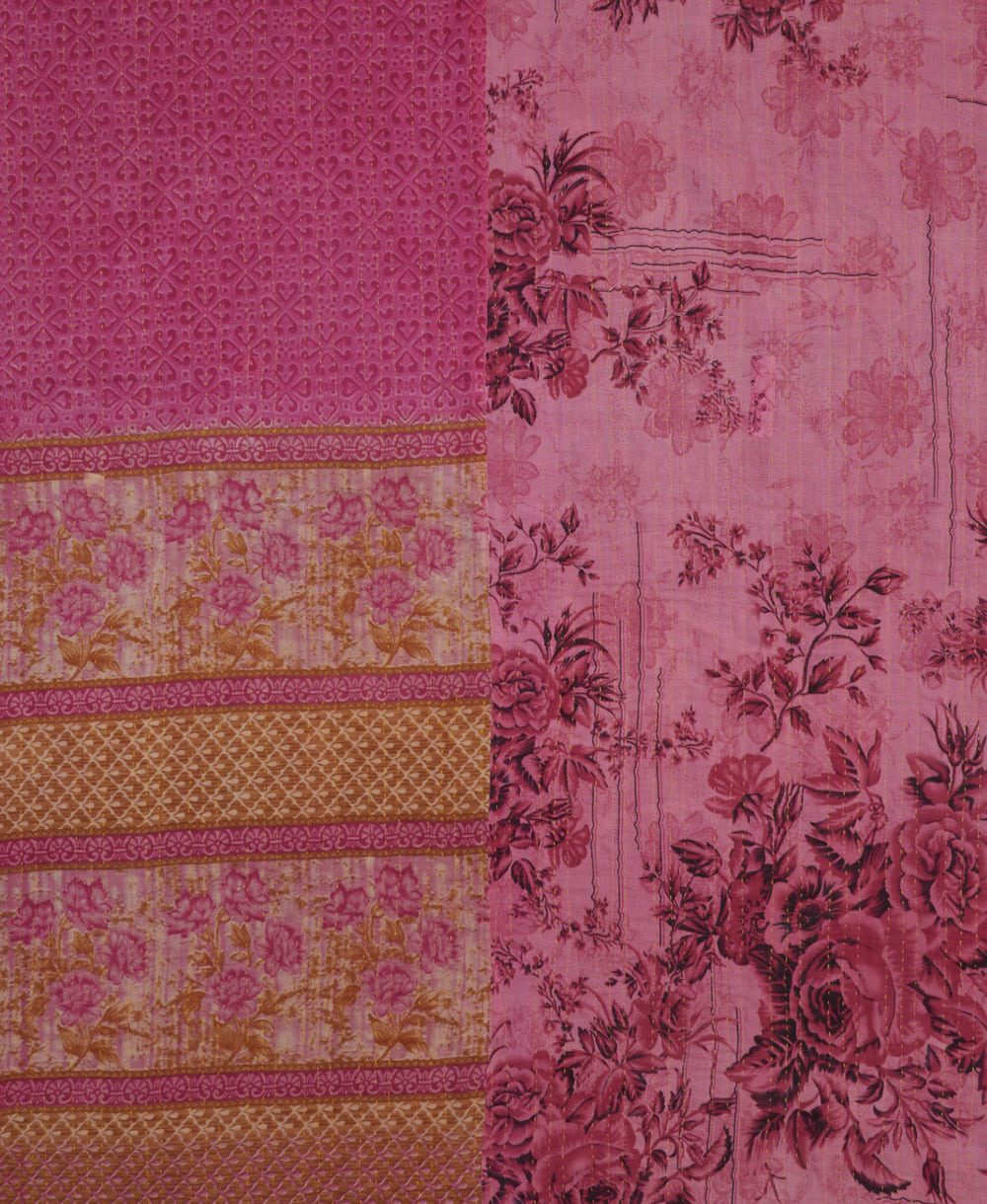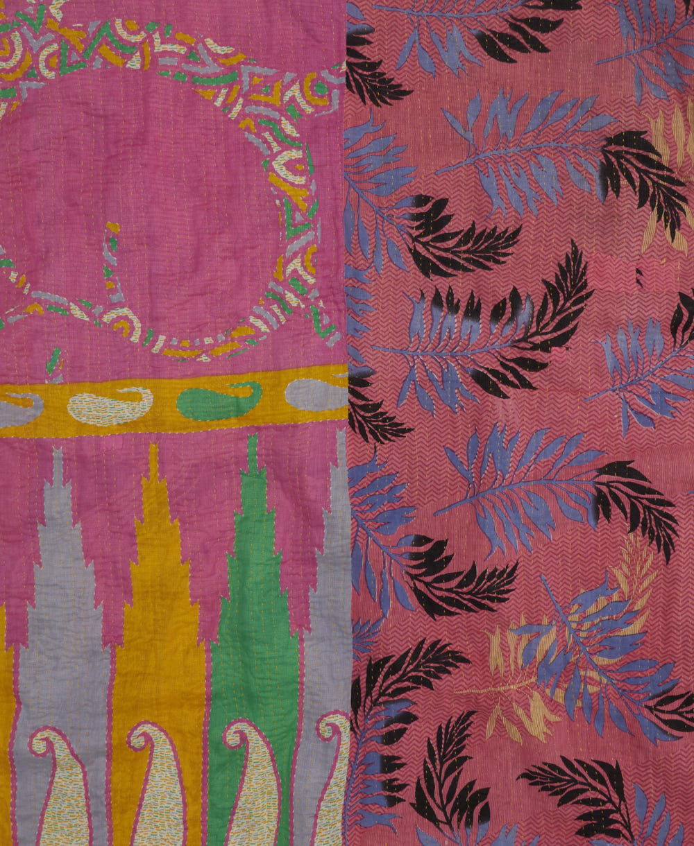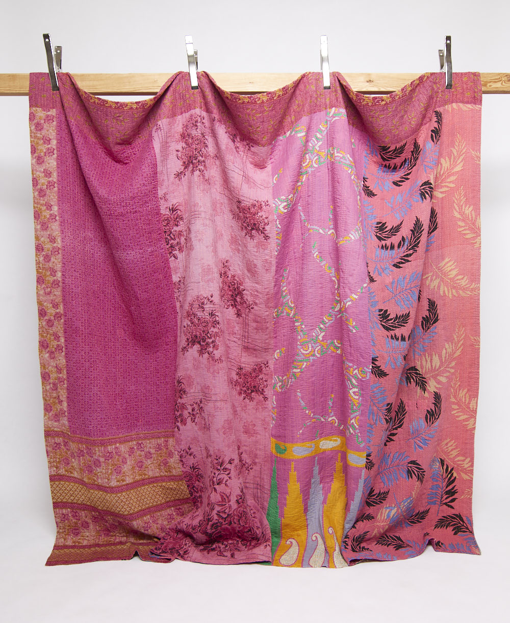 Ethically sourced and handmade with high-quality, upcycled vintage cotton saris, these one-of-a-kind products feature bold, colorful prints. Each kantha product is signed by the woman artisan maker right on the tag. Purposefully made, eco-friendly, and collectible. Shop our selection of kantha quilts, cotton scarves, kantha quilted jackets, lumbar pillows, and more.