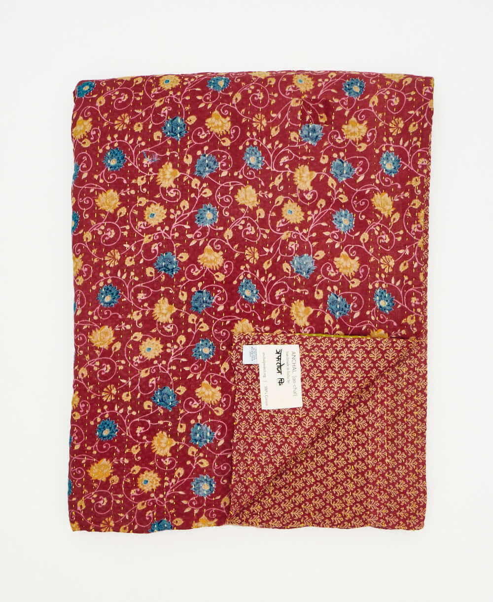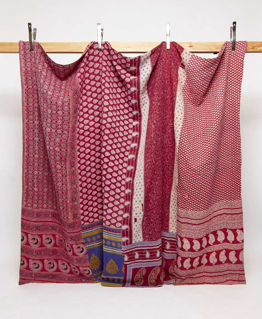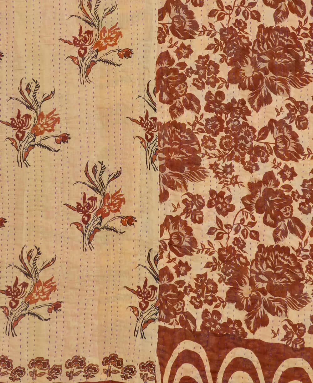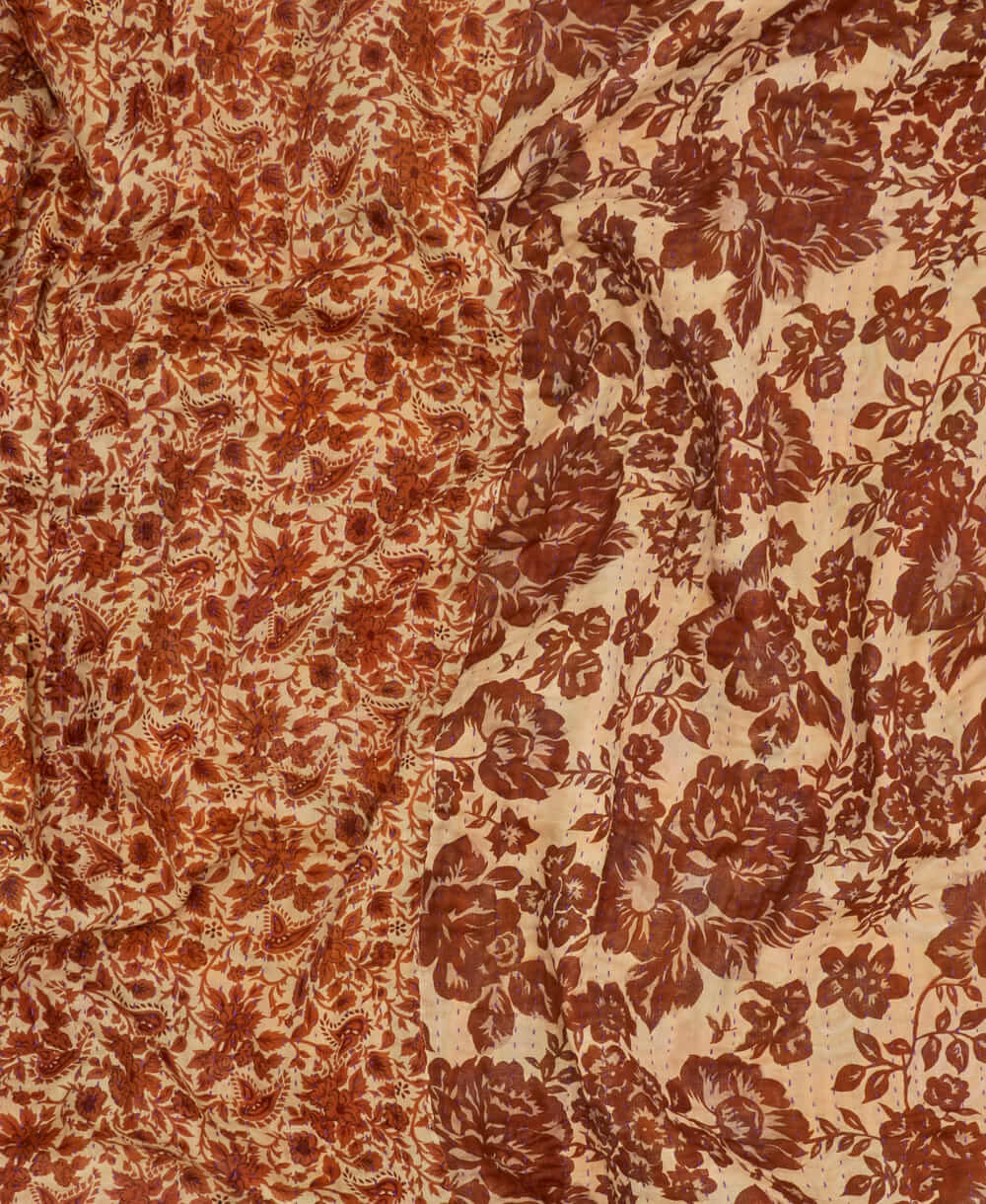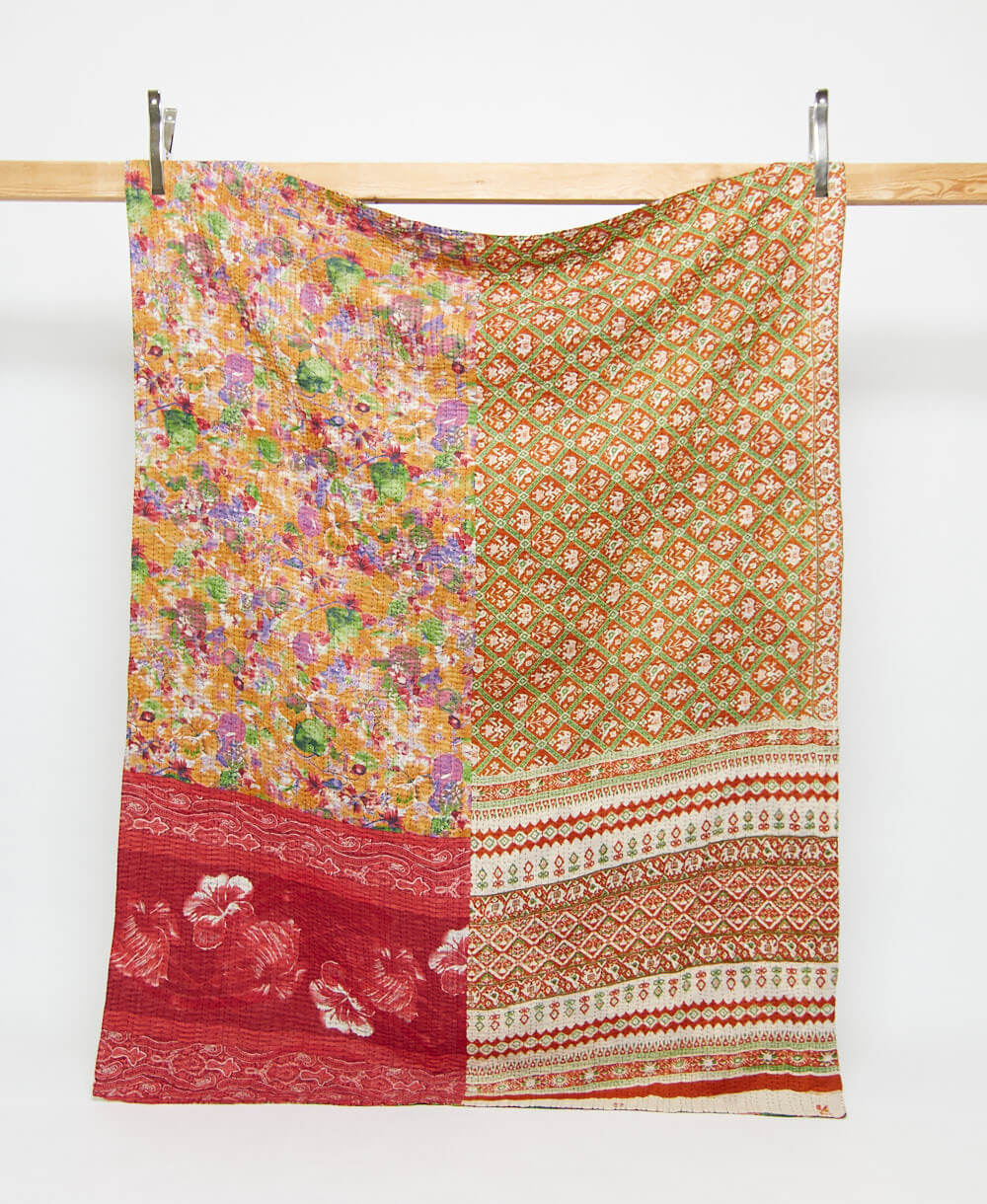 Ethically sourced and handmade with high-quality, upcycled vintage cotton saris, these one-of-a-kind products feature bold, colorful prints. Each kantha product is signed by the woman artisan maker right on the tag. Purposefully made, eco-friendly, and collectible. Shop our selection of kantha quilts, cotton scarves, kantha quilted jackets, lumbar pillows, and more.