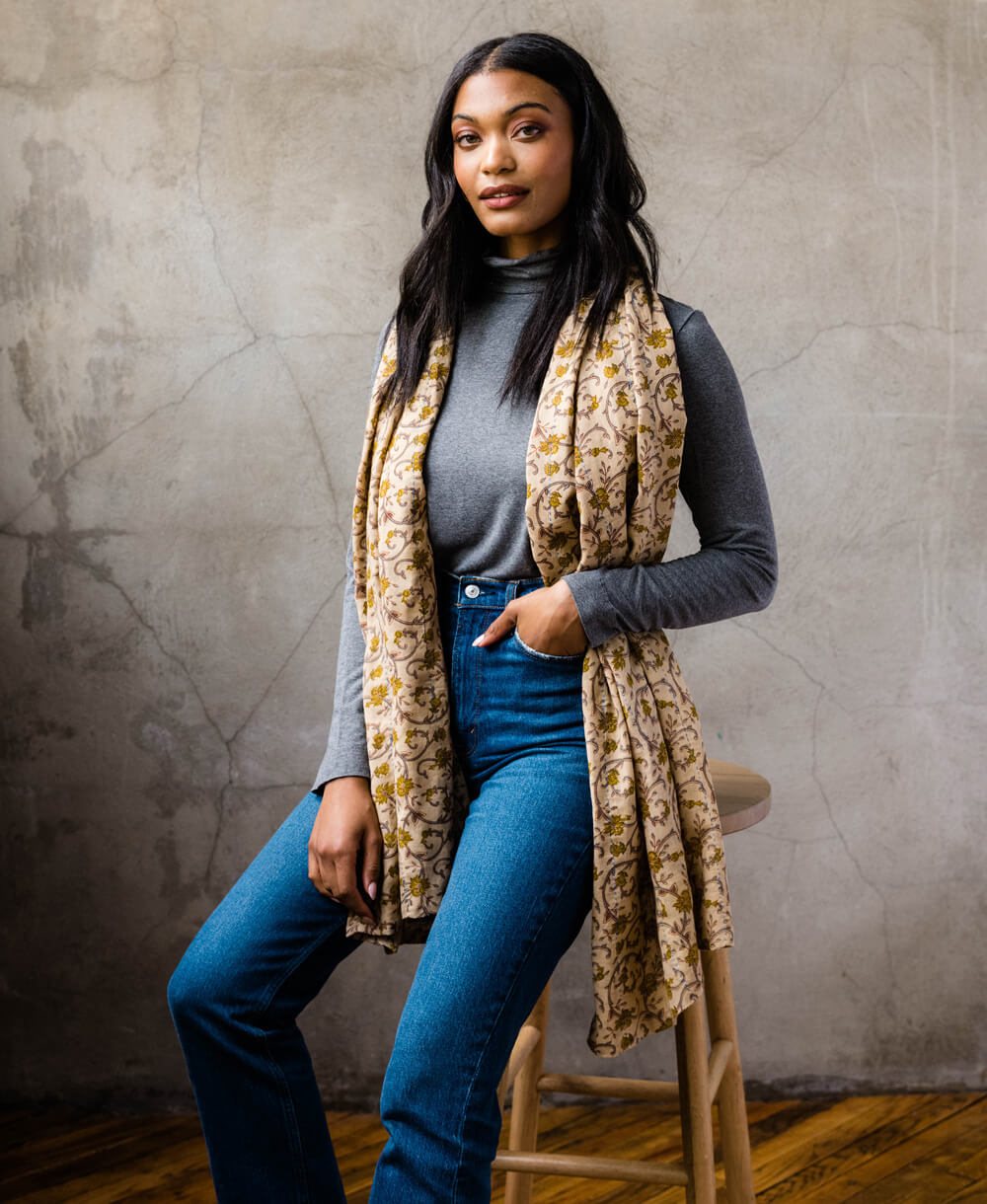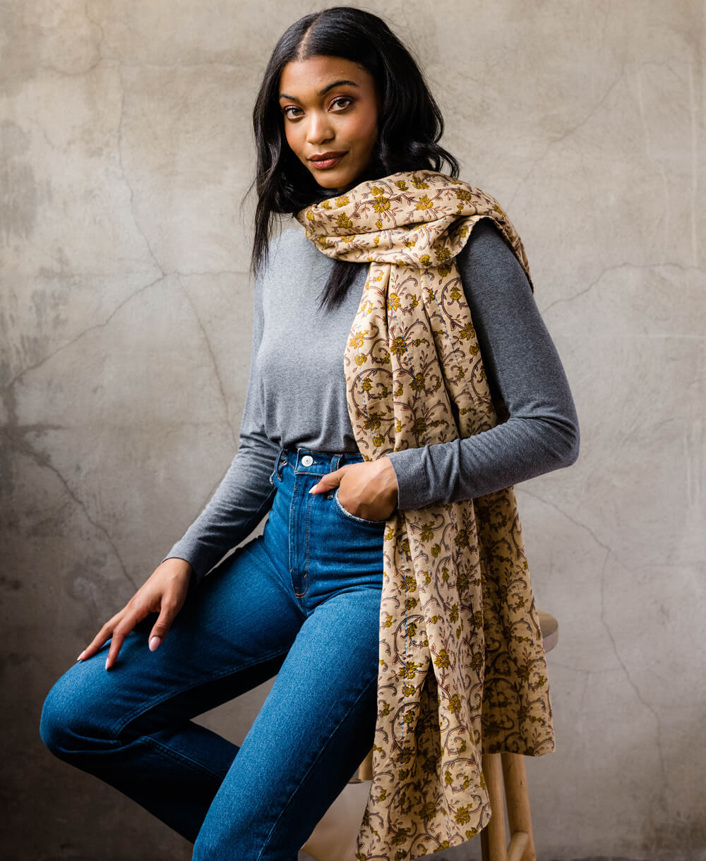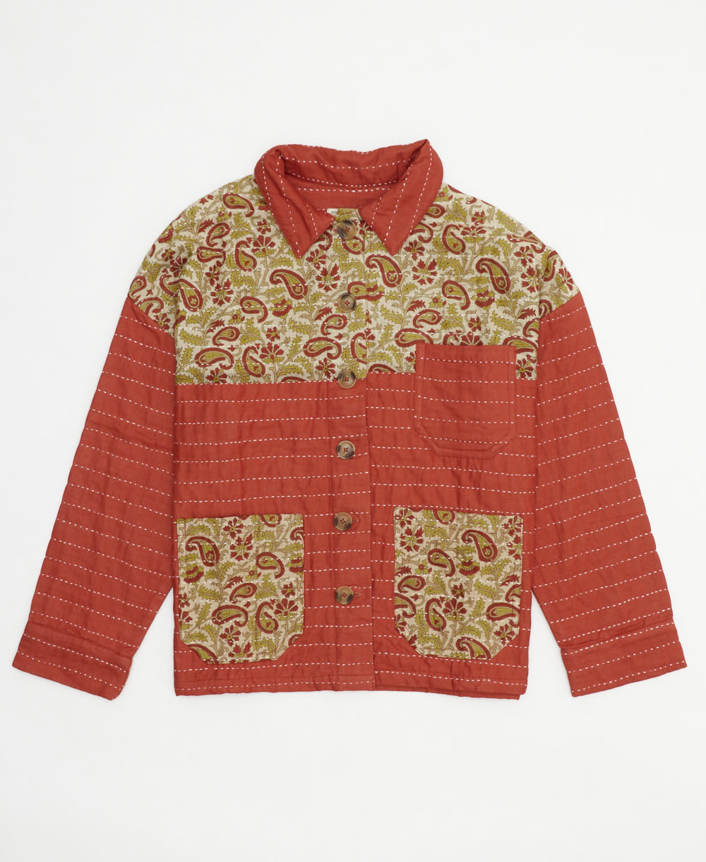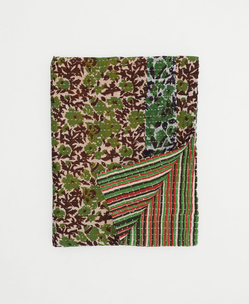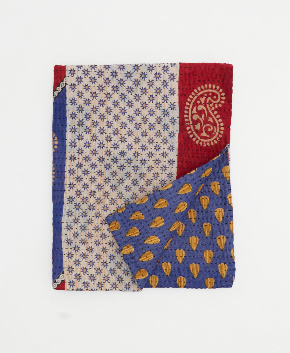 Ethically sourced and handmade with high-quality, upcycled vintage cotton saris, these one-of-a-kind products feature bold, colorful prints. Each kantha product is signed by the woman artisan maker right on the tag. Purposefully made, eco-friendly, and collectible. Shop our selection of kantha quilts, cotton scarves, kantha quilted jackets, lumbar pillows, and more.