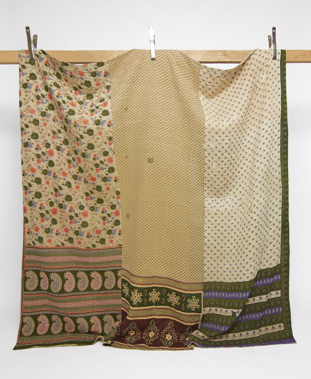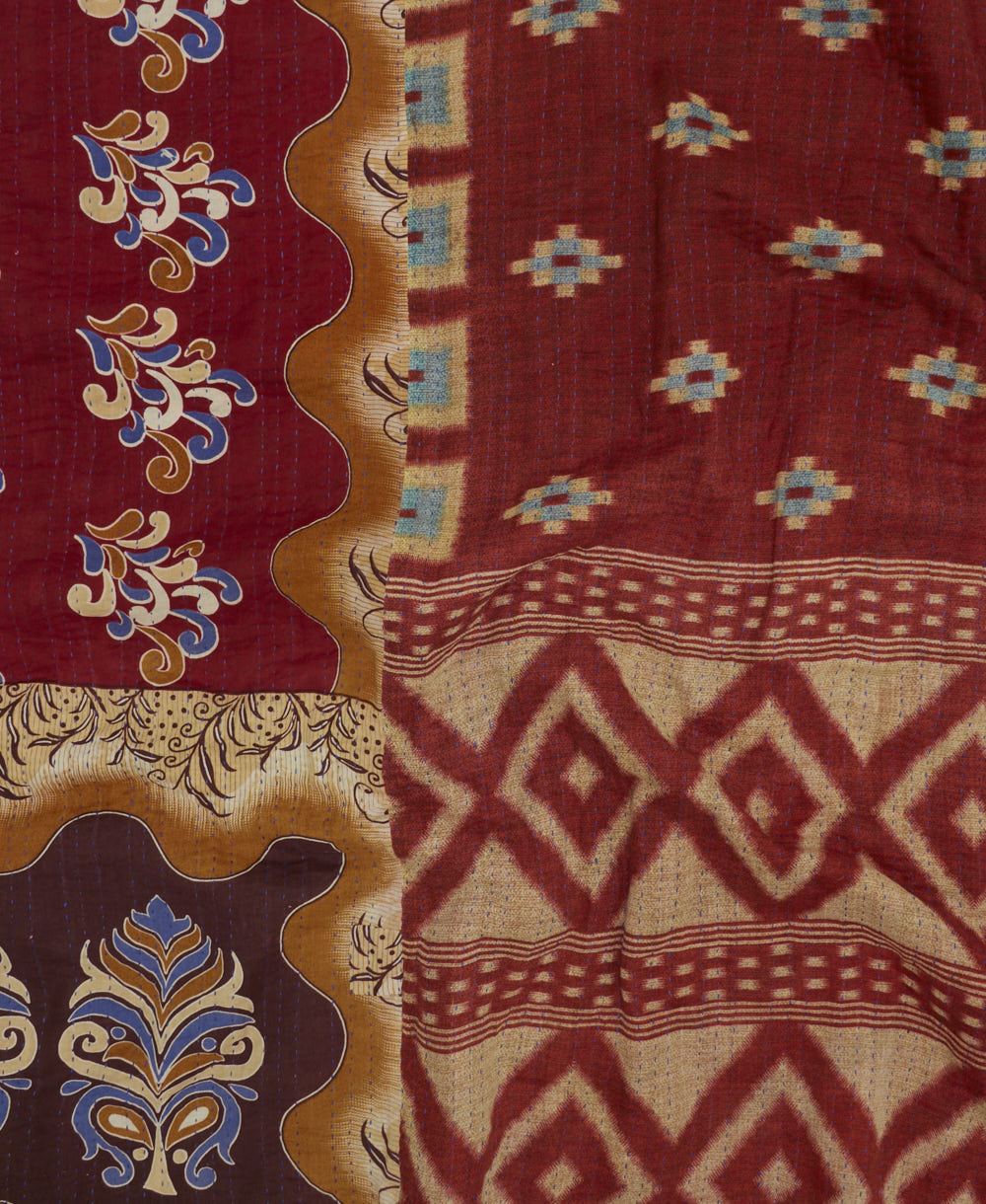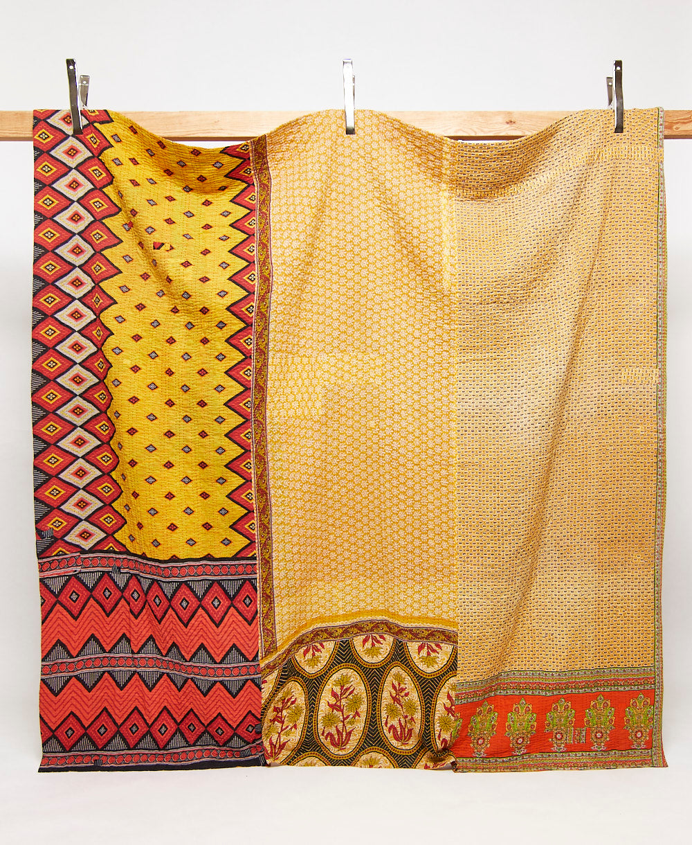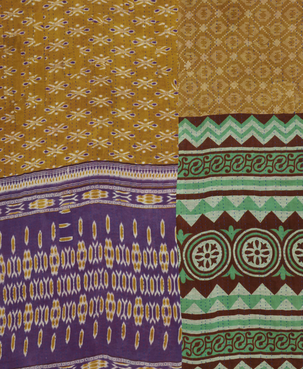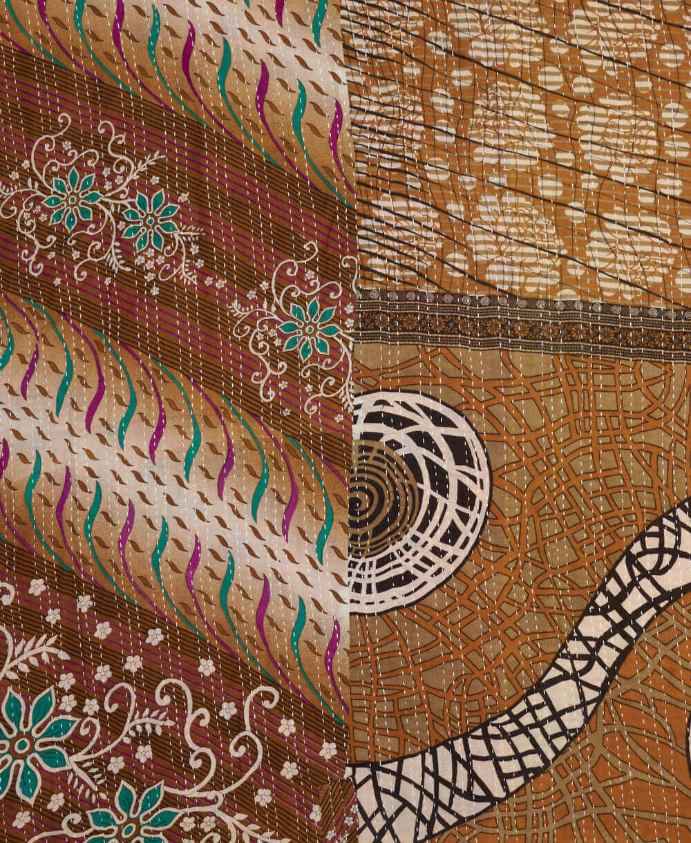 Ethically sourced and handmade with high-quality, upcycled vintage cotton saris, these one-of-a-kind products feature bold, colorful prints. Each kantha product is signed by the woman artisan maker right on the tag. Purposefully made, eco-friendly, and collectible. Shop our selection of kantha quilts, cotton scarves, kantha quilted jackets, lumbar pillows, and more.