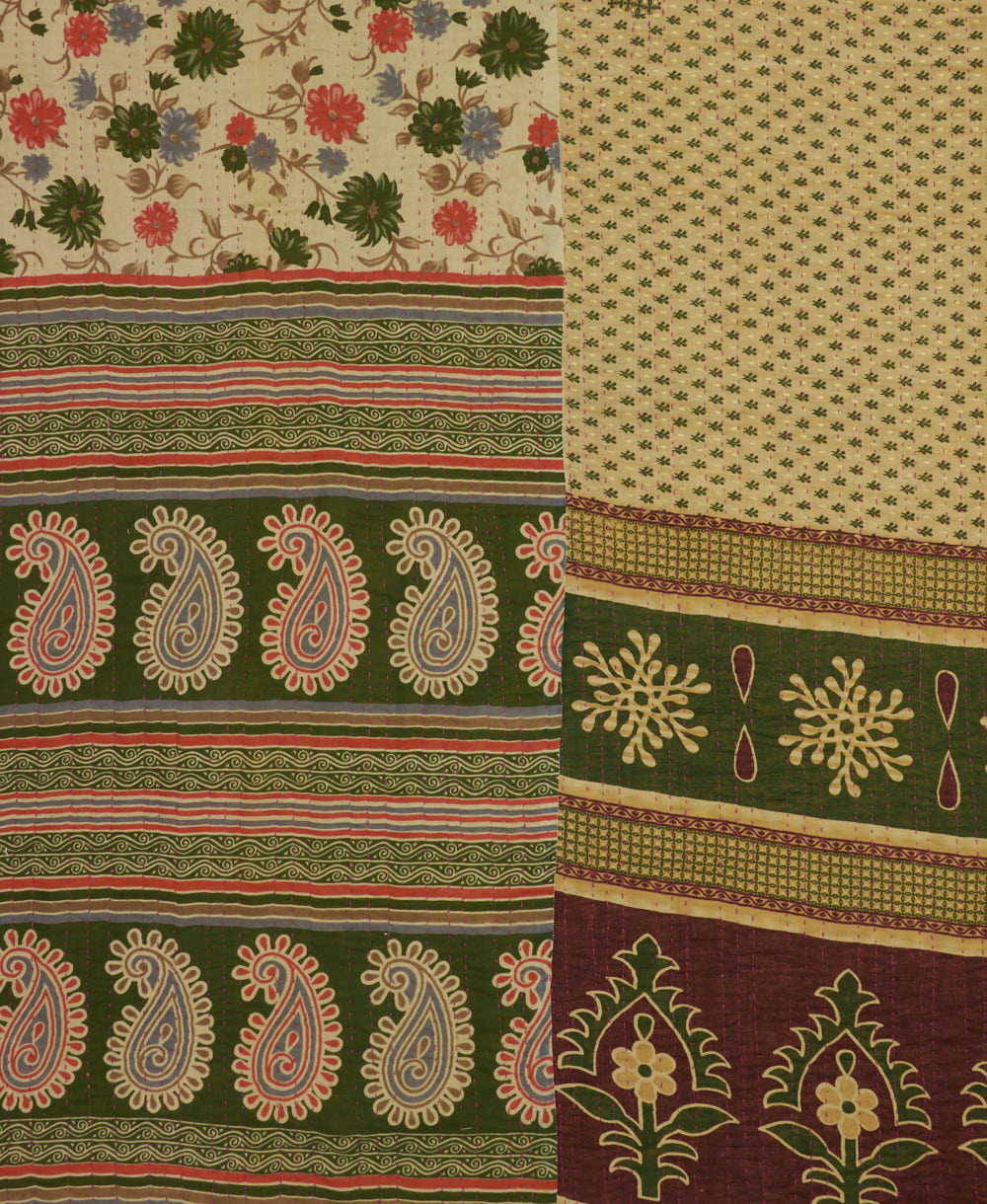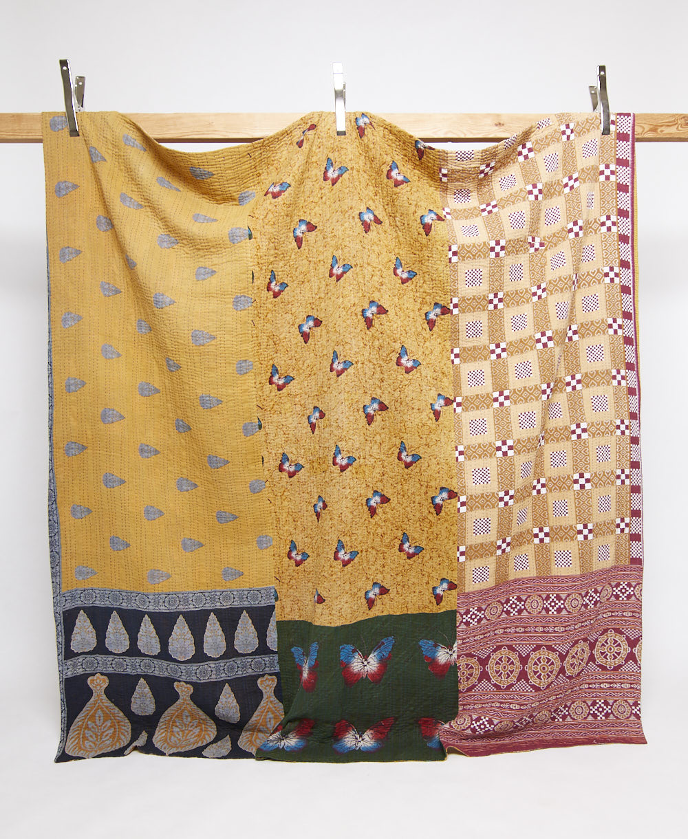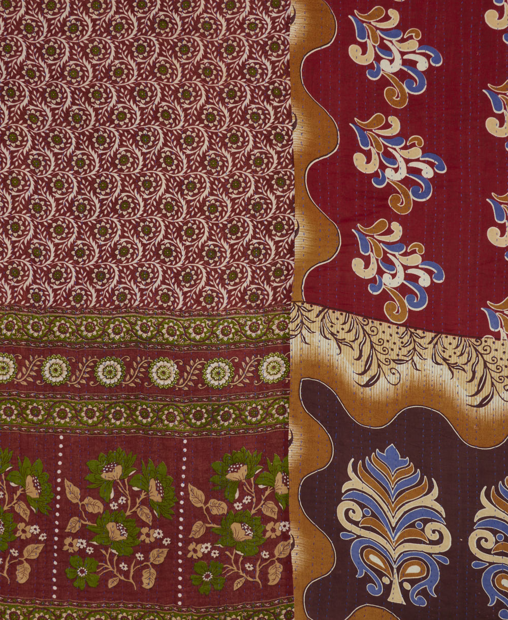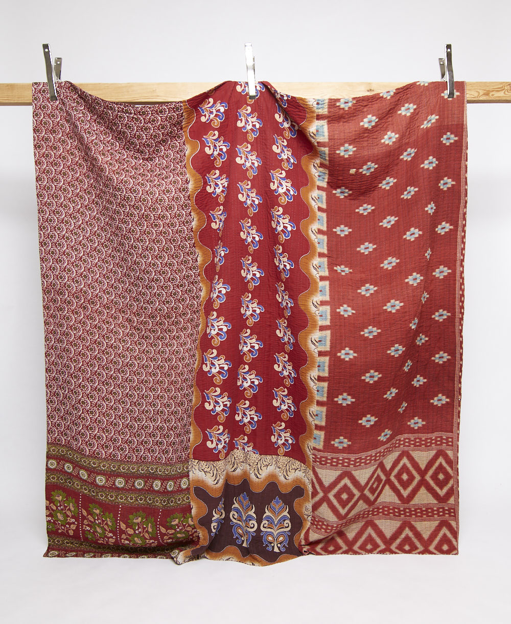 Ethically sourced and handmade with high-quality, upcycled vintage cotton saris, these one-of-a-kind products feature bold, colorful prints. Each kantha product is signed by the woman artisan maker right on the tag. Purposefully made, eco-friendly, and collectible. Shop our selection of kantha quilts, cotton scarves, kantha quilted jackets, lumbar pillows, and more.