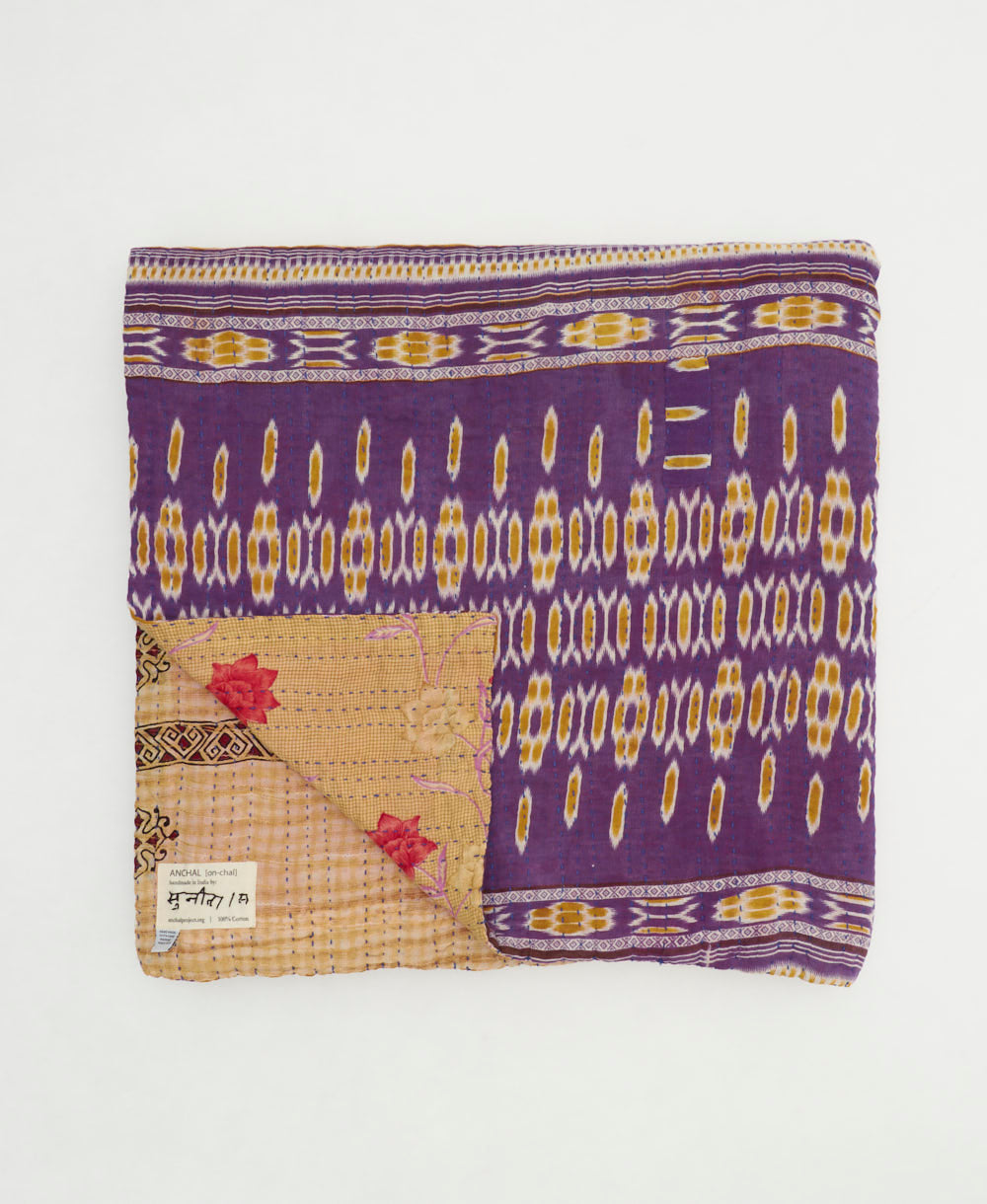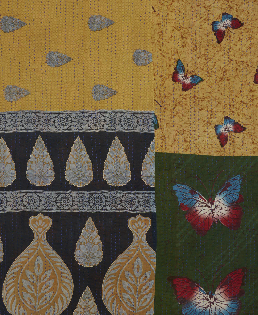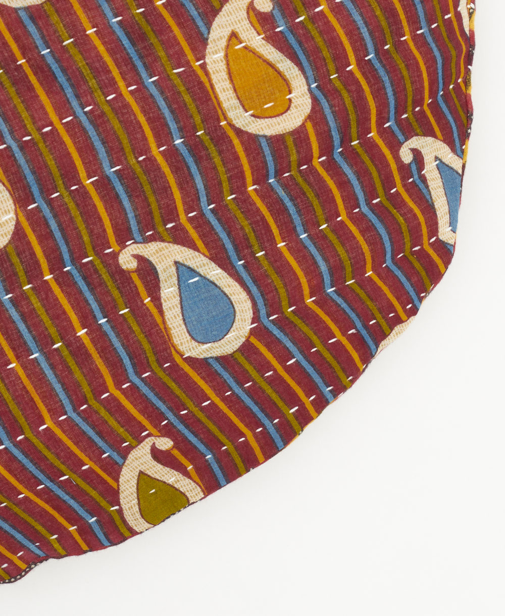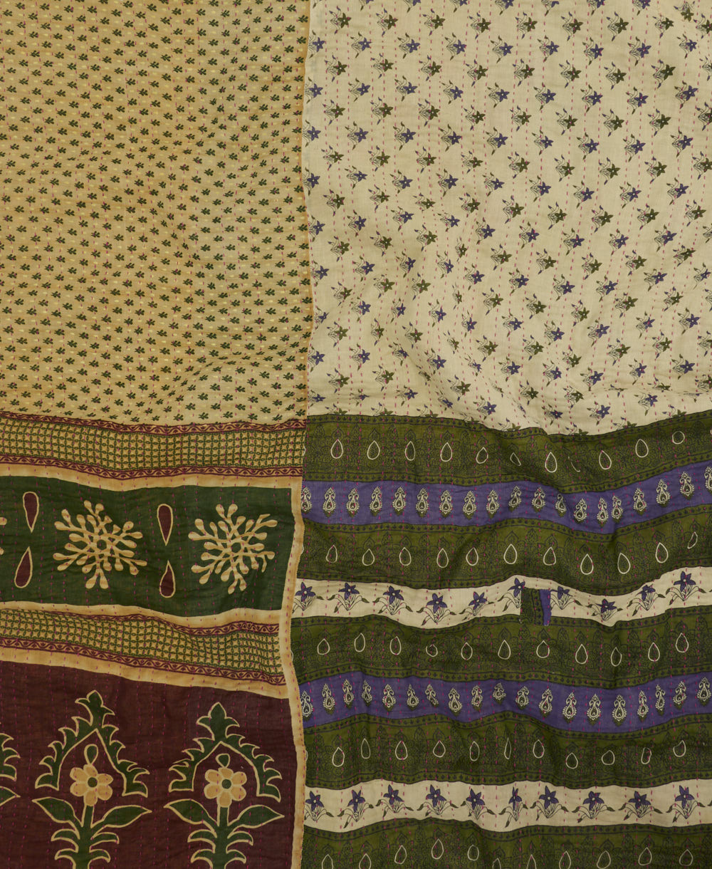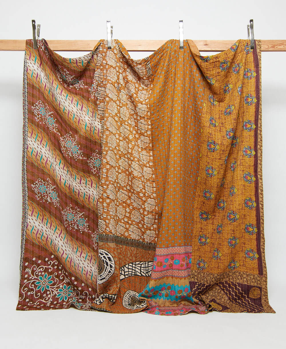 Ethically sourced and handmade with high-quality, upcycled vintage cotton saris, these one-of-a-kind products feature bold, colorful prints. Each kantha product is signed by the woman artisan maker right on the tag. Purposefully made, eco-friendly, and collectible. Shop our selection of kantha quilts, cotton scarves, kantha quilted jackets, lumbar pillows, and more.