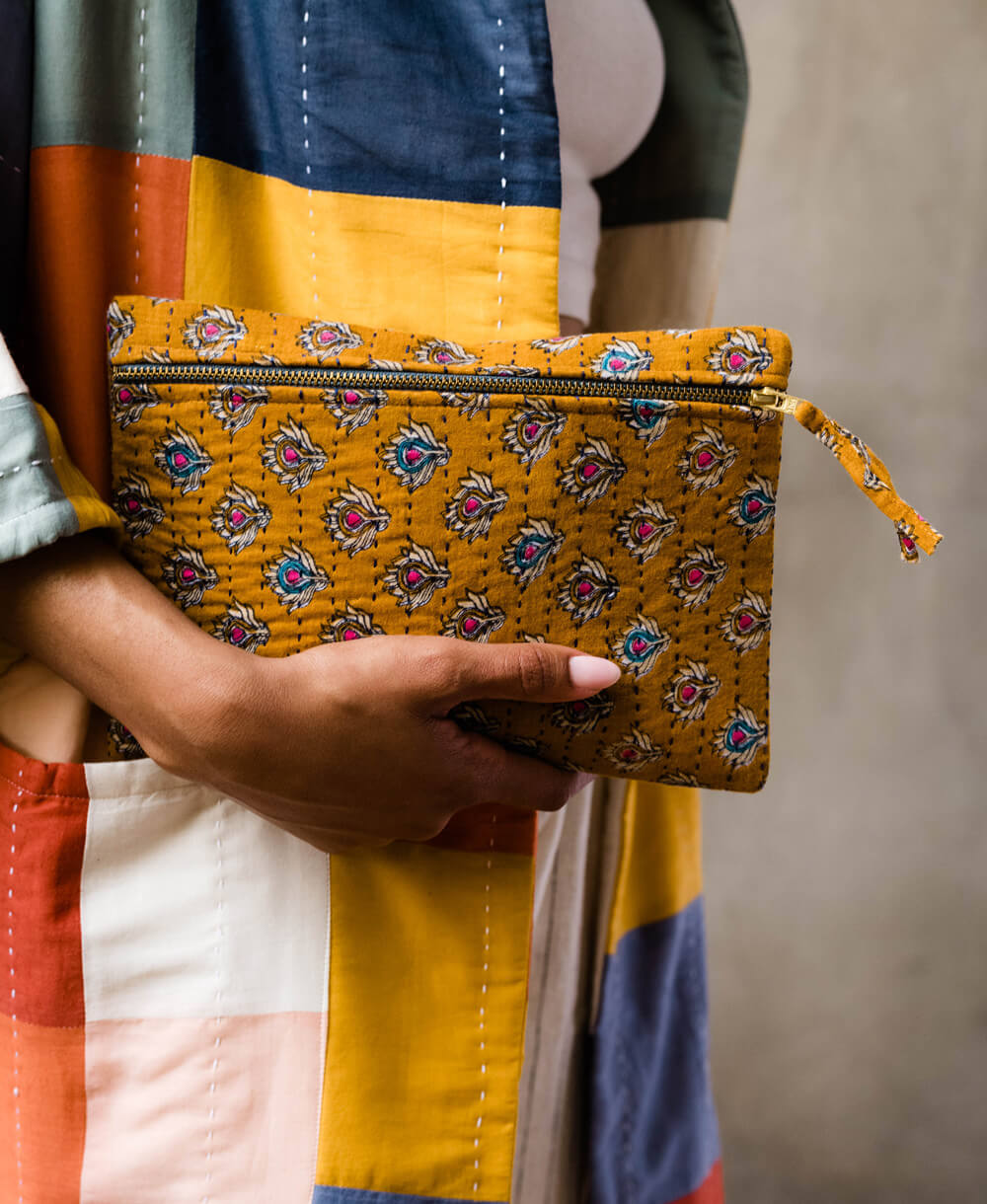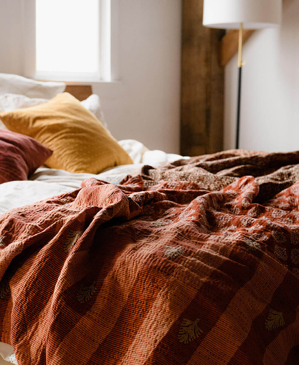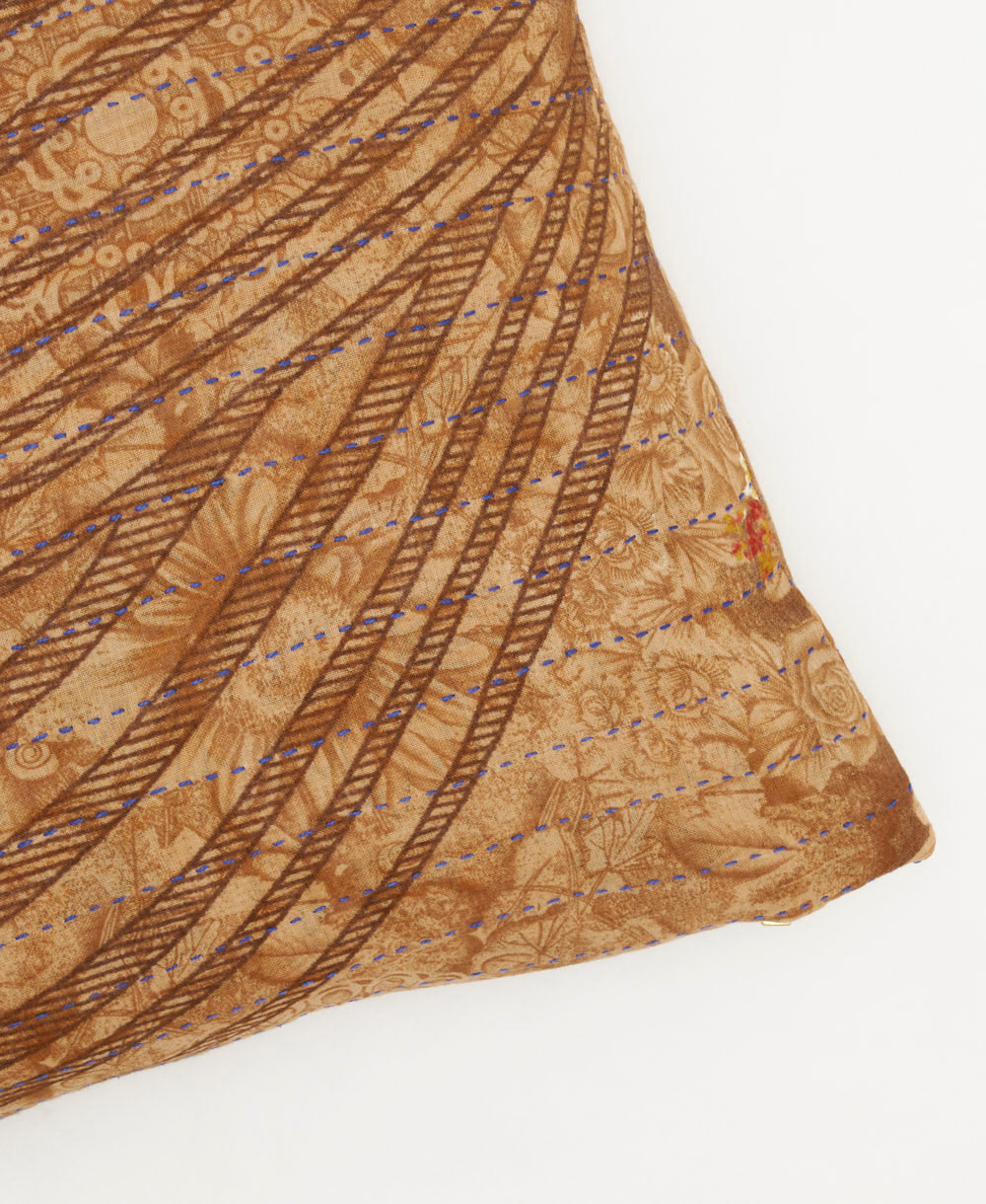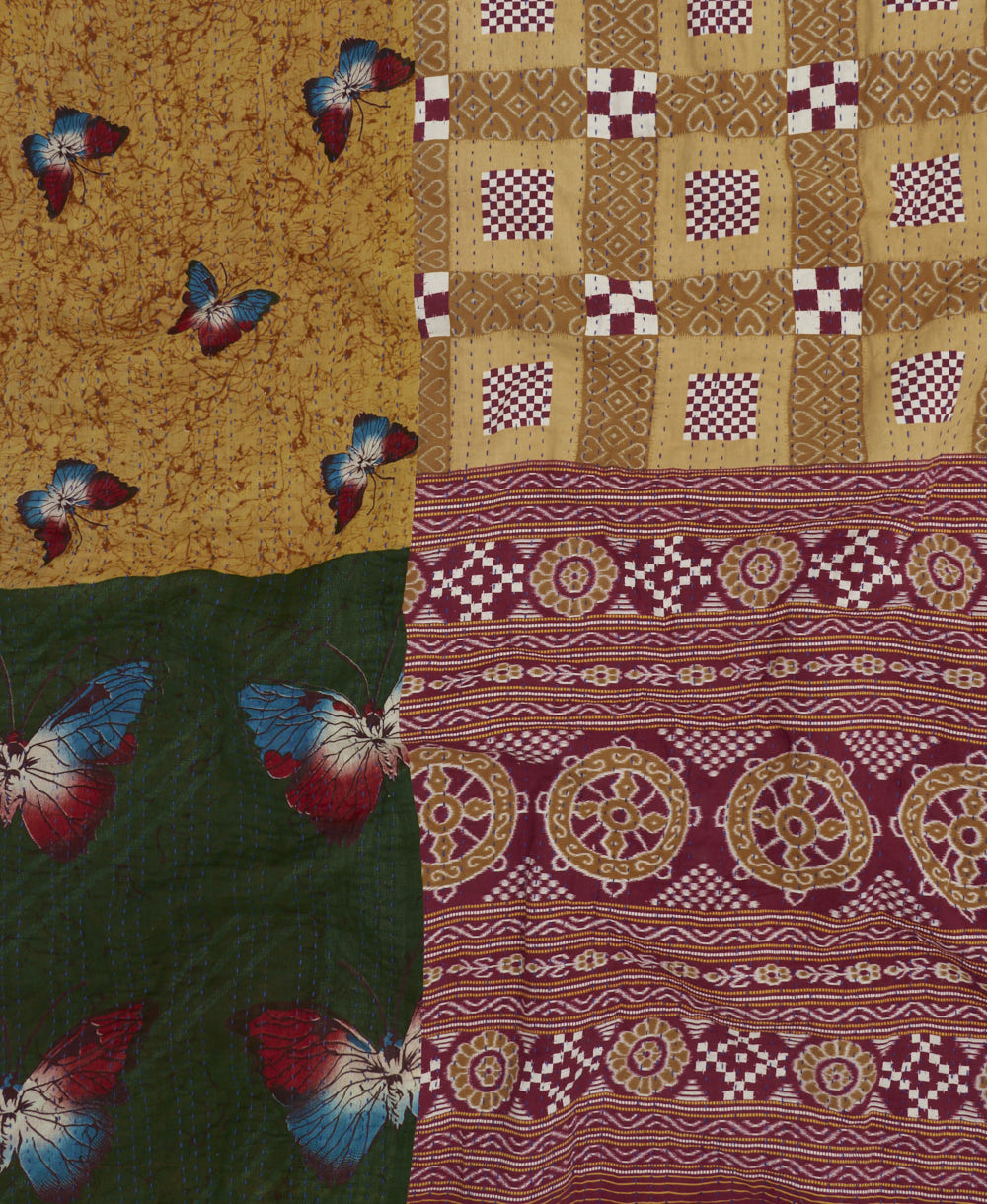 Ethically sourced and handmade with high-quality, upcycled vintage cotton saris, these one-of-a-kind products feature bold, colorful prints. Each kantha product is signed by the woman artisan maker right on the tag. Purposefully made, eco-friendly, and collectible. Shop our selection of kantha quilts, cotton scarves, kantha quilted jackets, lumbar pillows, and more.