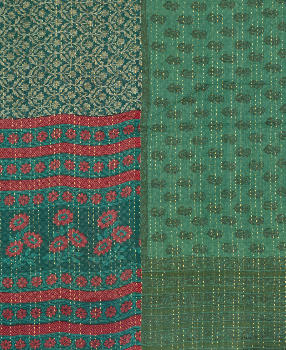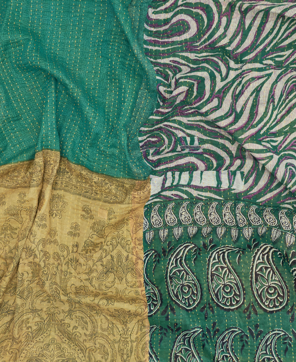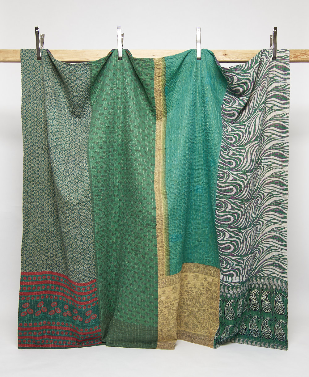 Ethically sourced and handmade with high-quality, upcycled vintage cotton saris, these one-of-a-kind products feature bold, colorful prints. Each kantha product is signed by the woman artisan maker right on the tag. Purposefully made, eco-friendly, and collectible. Shop our selection of kantha quilts, cotton scarves, kantha quilted jackets, lumbar pillows, and more.