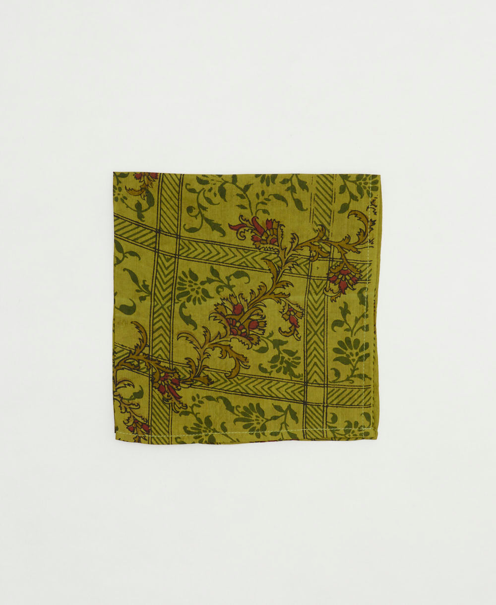 Crafted from repurposed silk saris, this silk pocket square is both elegant and sustainable, making it a one-of-a-kind accessory. It can also be styled as a hair accessory when tied in your hair for added versatility.