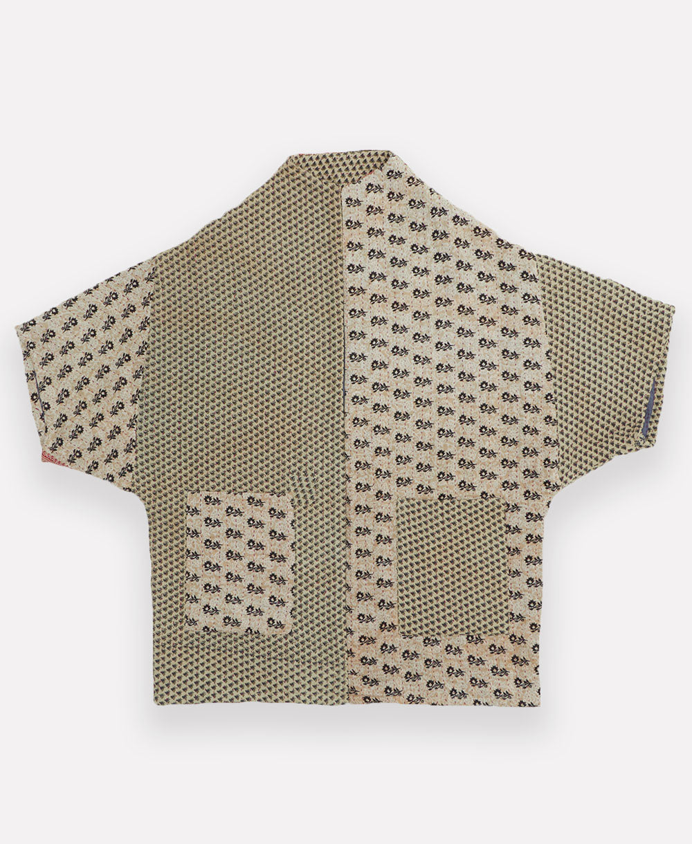 This cocoon quilted jacket is truly unique. No two are exactly alike, making it a one-of-a-kind wearable art piece. Constructed from 6 layers of upcycled cotton saris with all-over hand-stitching, this long quilted jacket will make you feel just like you’re cuddling up with your favorite quilt. Featuring two large front patch pockets for convenience and a modern cocoon neckline, this jacket will be one you reach for again and again. Layer it over a t-shirt or your favorite sweater for an effortless feel.