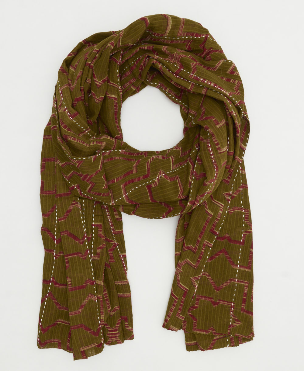 Add a pop of charm to your sustainable wardrobe with our cotton oversized scarf. Each long scarf is one-of-a-kind, handcrafted from upcycled vintage cotton saris and adorned with delicate embroidery for added detail and texture. Perfect for those in-between seasons, this lightweight scarf can be wrapped around your neck to fend off chilly drafts or draped over your shoulders as a stylish shawl or beach wrap. Whether you're layering up for a brisk walk or adding a splash of color to your outfit, this playful accessory is your new go-to for versatile, eco-friendly fashion.